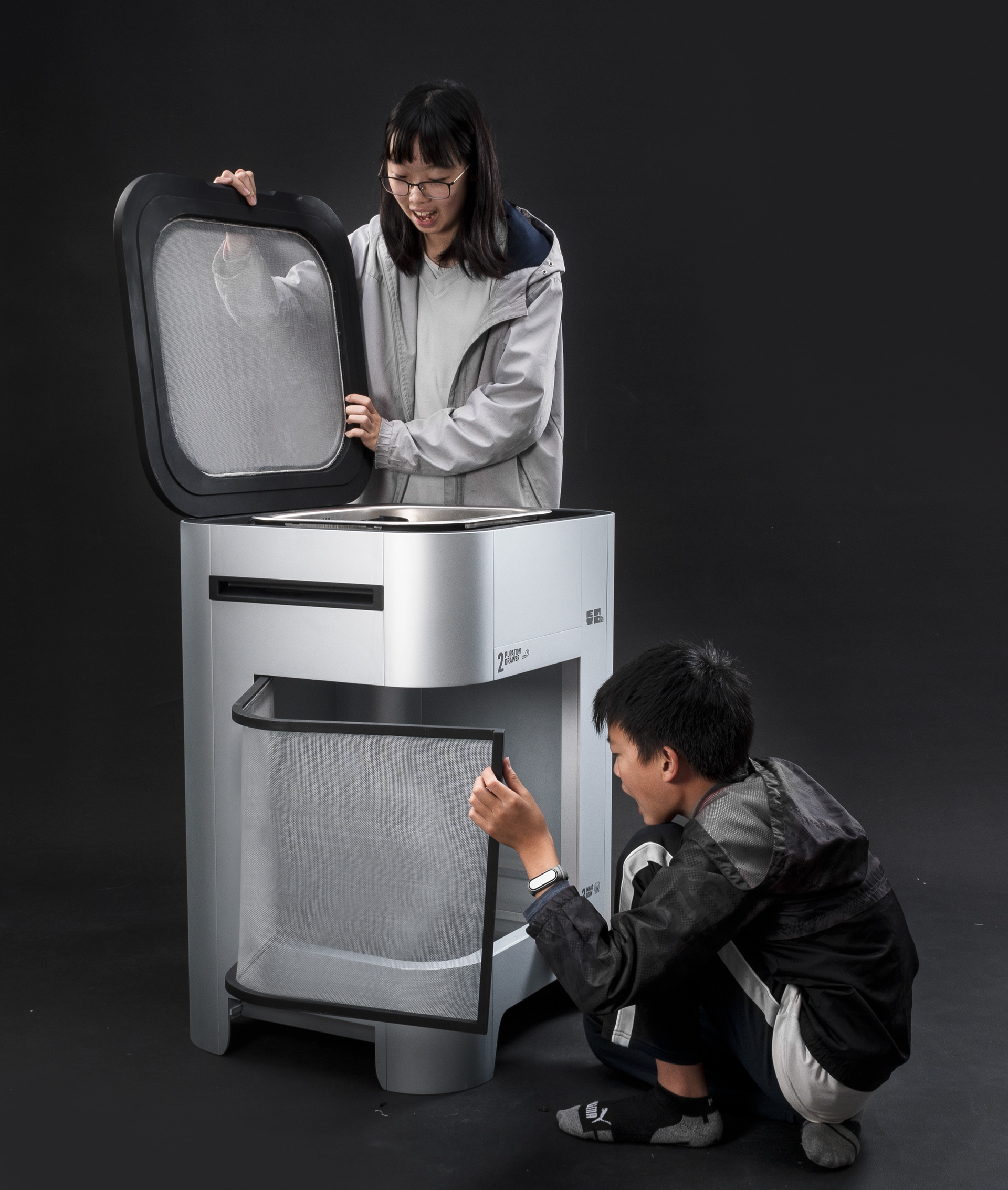 Ento.edu 黑水虻教育養殖裝置,整合了地表最強清道夫——黑水虻的所有生長流程於一體,垂直設置優化了蟲體成長以及學童的觀察操作。