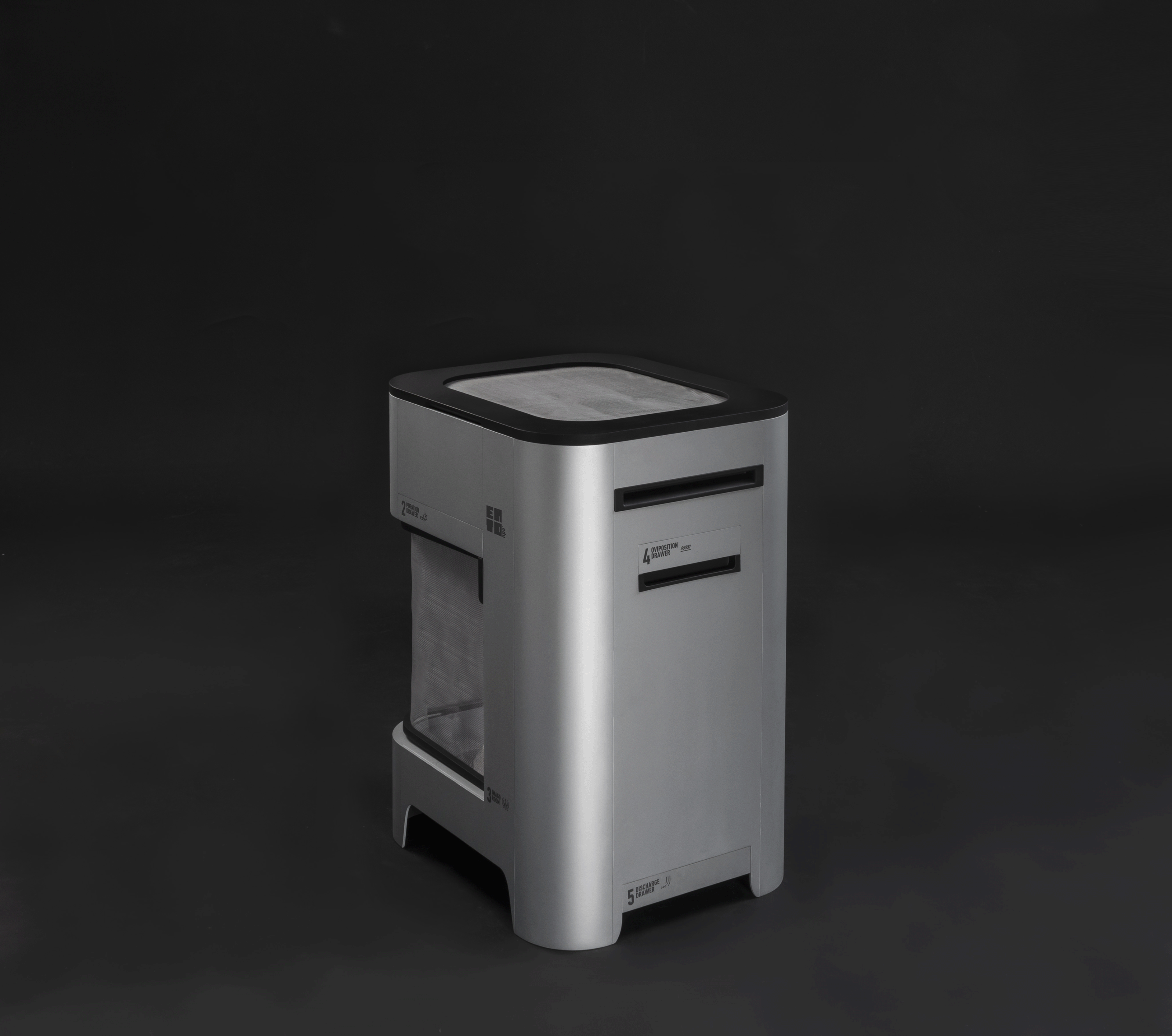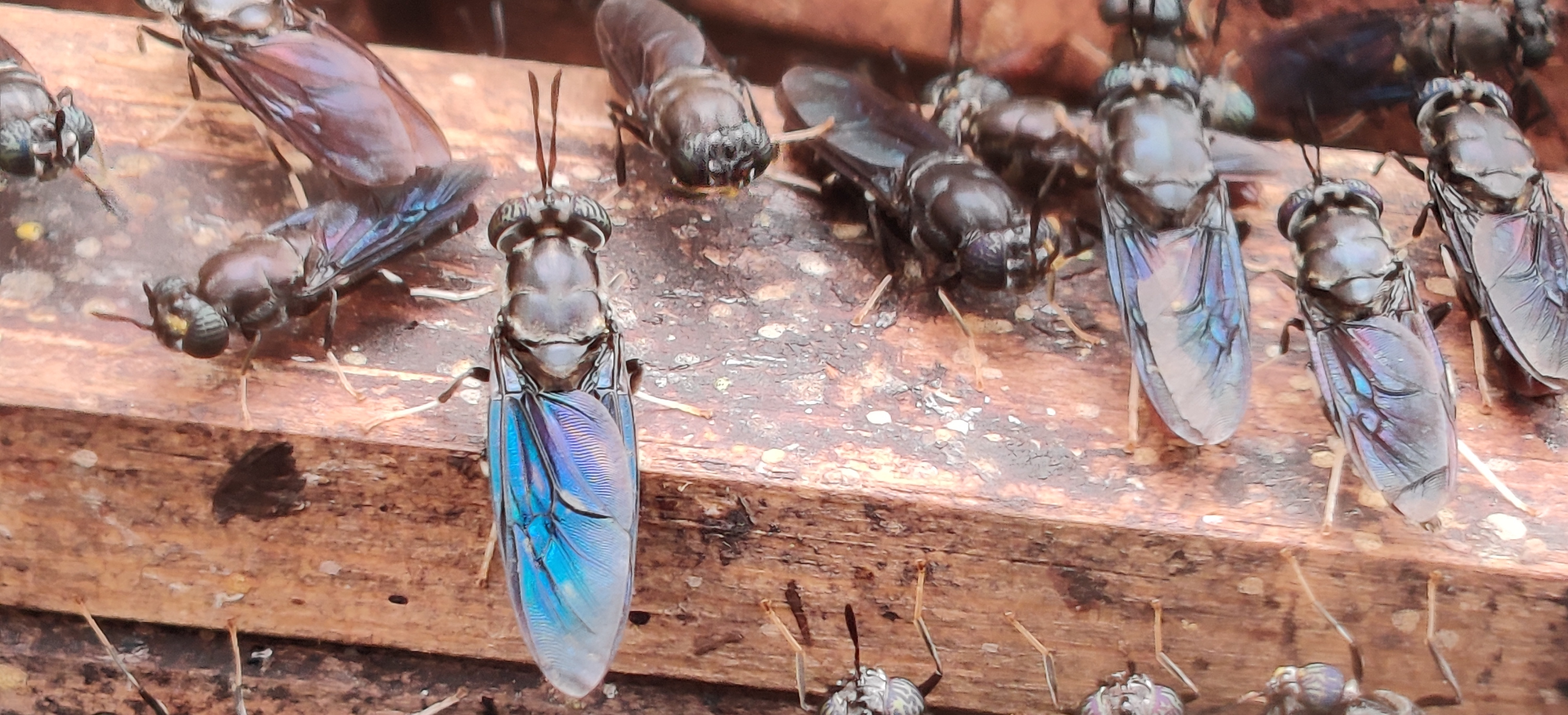 The insect in this device is called the black soldier fly, the larvae of the black soldier flies are considered as decomposers, they break down organic matter and return nutrients back to the soil. Black soldier fly cultivation has been used for a source of high quality protein for other animals, even human, by recycling agricultural waste products and household food scraps.